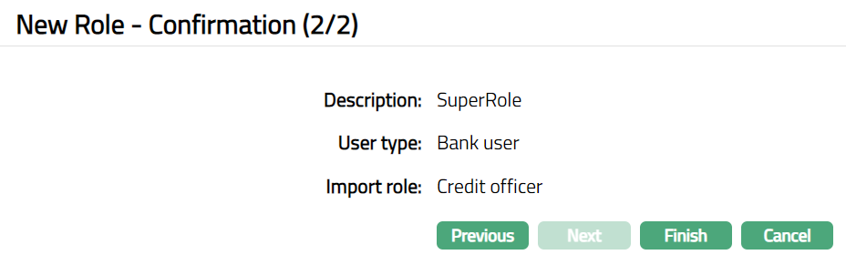 Click Next. New Role -- Confirmation (2/2) page appears.