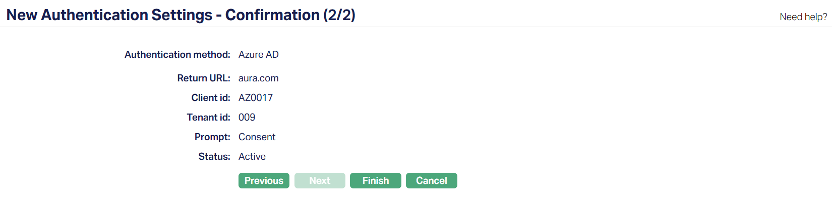 9. Click Next. New Authentication Settings -- Confirmation (2/2) page appears.
