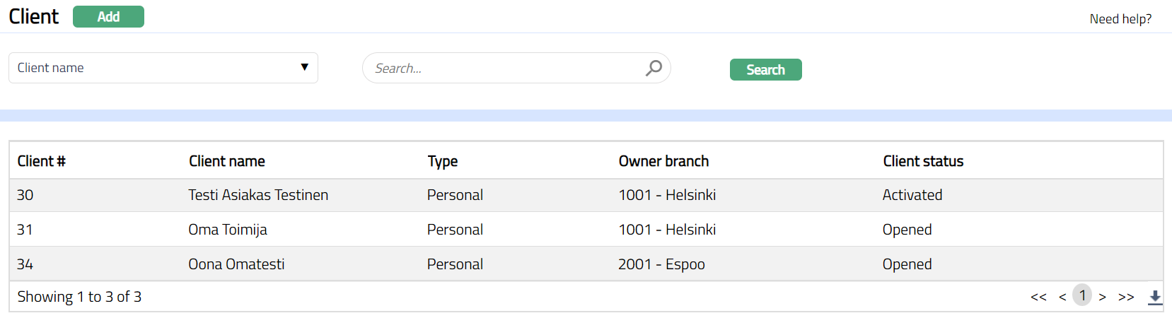 Client Search page appears. Select the Client name to view all the records or use relevant search criteria to get the required results.