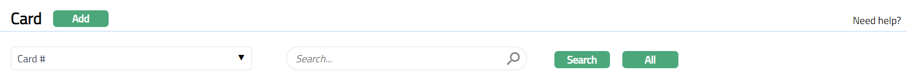 - From Card menu, click Cards, and then Maintain card. Card - Search page appears. All Cards available in Aura appear on the page.