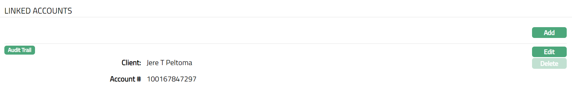 - Click Save. Linked Accounts page appears with the added details.