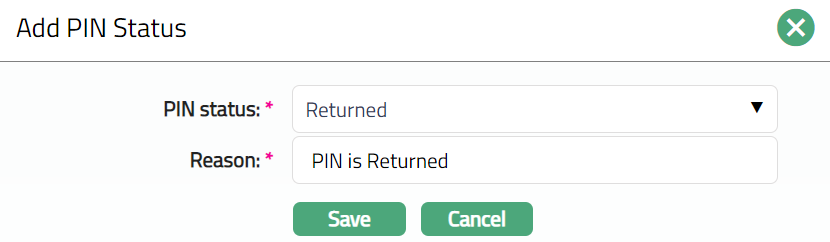 - Click Add. Add PIN Status window appears.