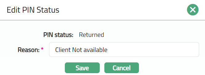- Click Edit. Edit Pin Status page appears.