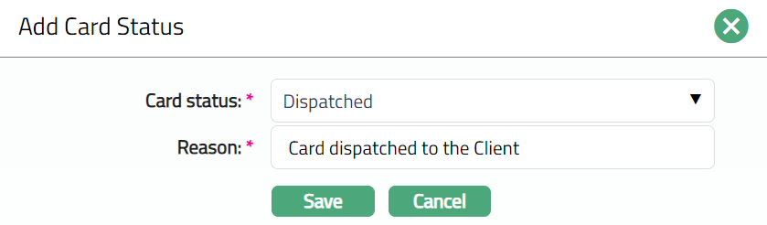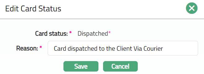 Dispatched: This is the card status in which the card will be dispatched to the client from the bank.