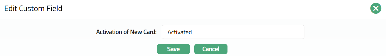 Click Edit. Edit Custom Field page appears. In the following illustration, a custom field, Activation of New Card has been mapped to the Account as shown below: