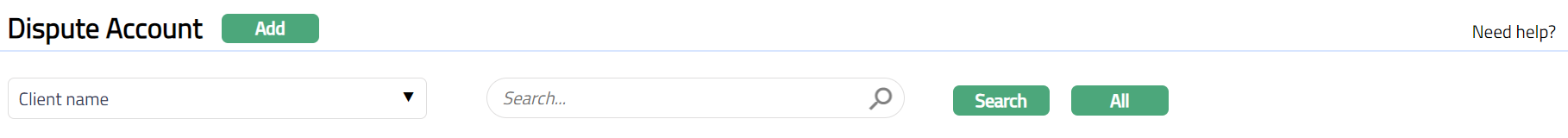 Select required Dispute Account Product from the drop-down list of active Dispute Account Products maintained in Aura.