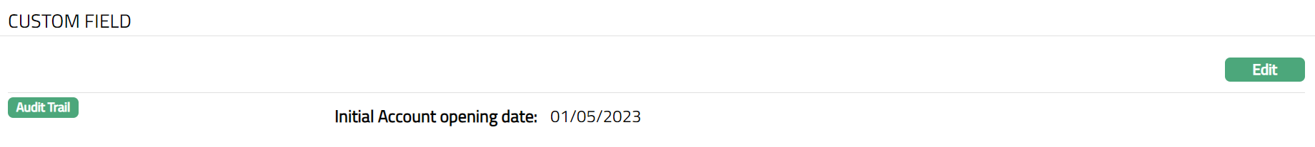 Click Maintain. Maintain Custom Field page appears. In the following illustration, one custom field Initial Account opening date has been mapped to the account as shown below.