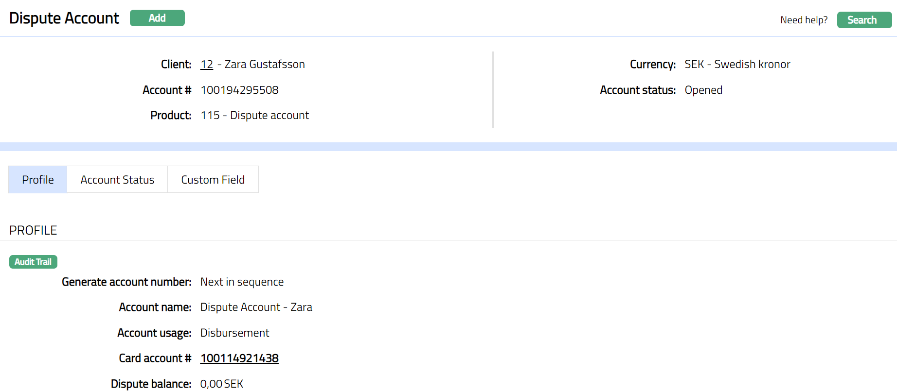 If the dispute account is auto created, automatically, the account status is set as Activated and the record status is Approved.
