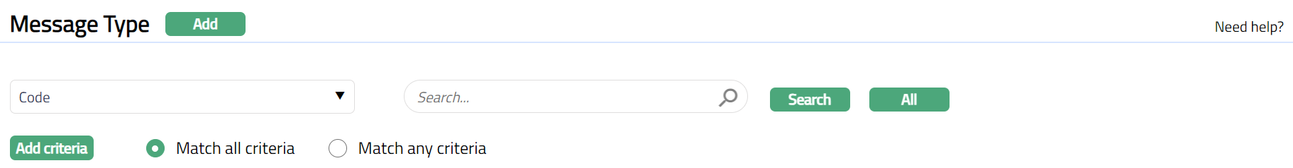 Click All to retrieve all existing Message Type records. Then click on any of the existing Message Type records to access the Message Type page and then click Add.