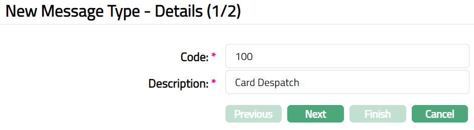 Enter Description for the Message Type. For example, Card Despatch.