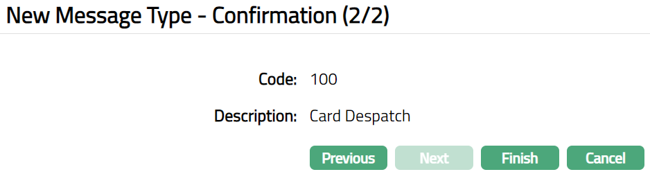 Click Next. New Message Type -- Confirmation (2/2) page appears.