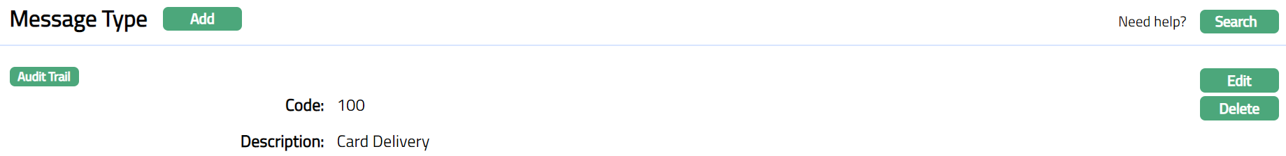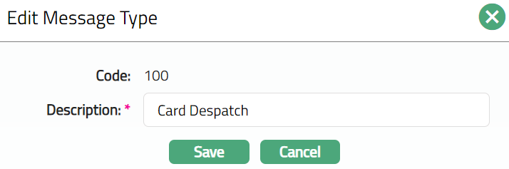 Message Type allows you to maintain the various Message types for Cards.