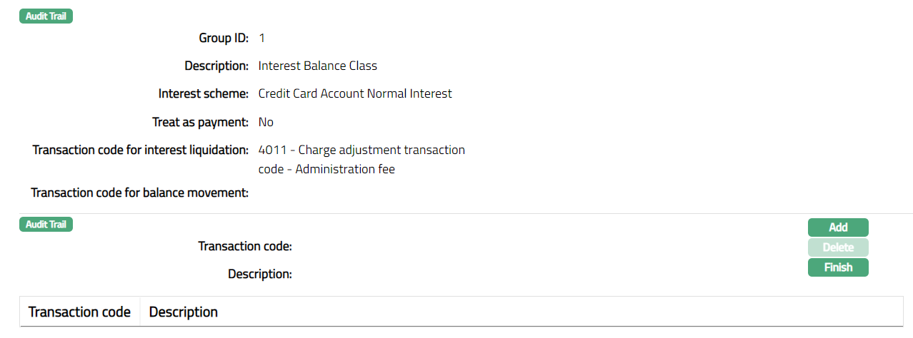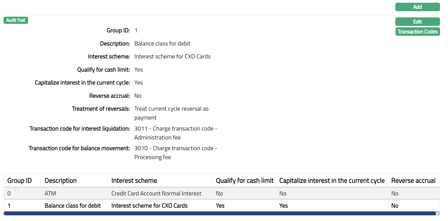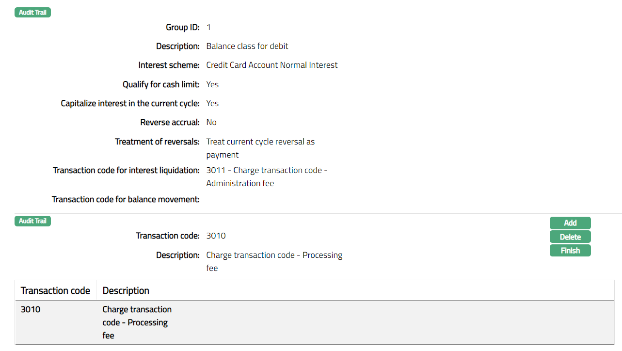 | 14 | Name | Textbox | Name of the debit balance class. Display all the debit balance classes for the product with the following set of fields. |