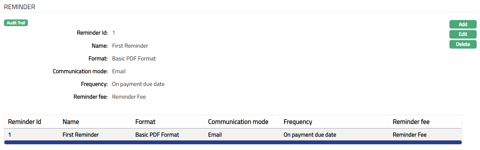 | 18 | Payment over due fee | Dropdown | Defaulted value will be displayed. Edit button enabled on selection of this field. |
