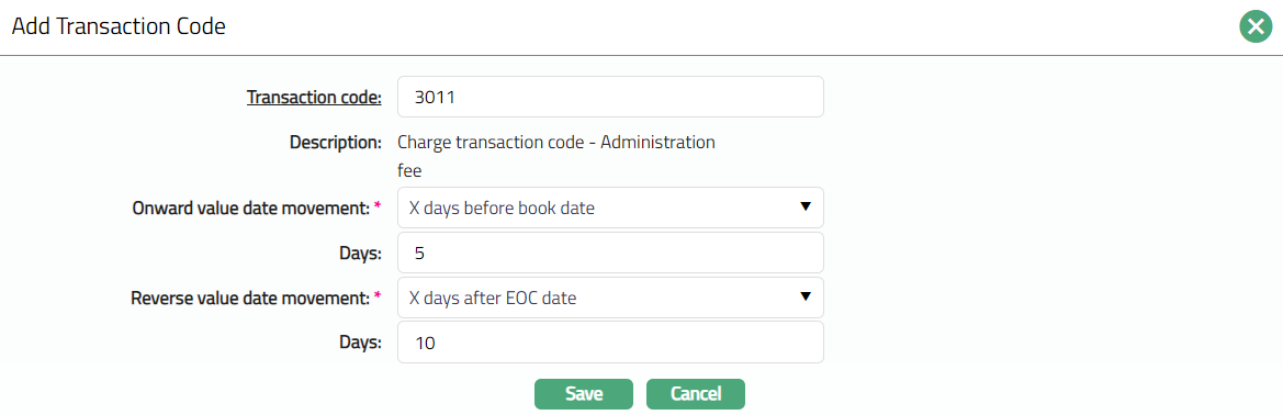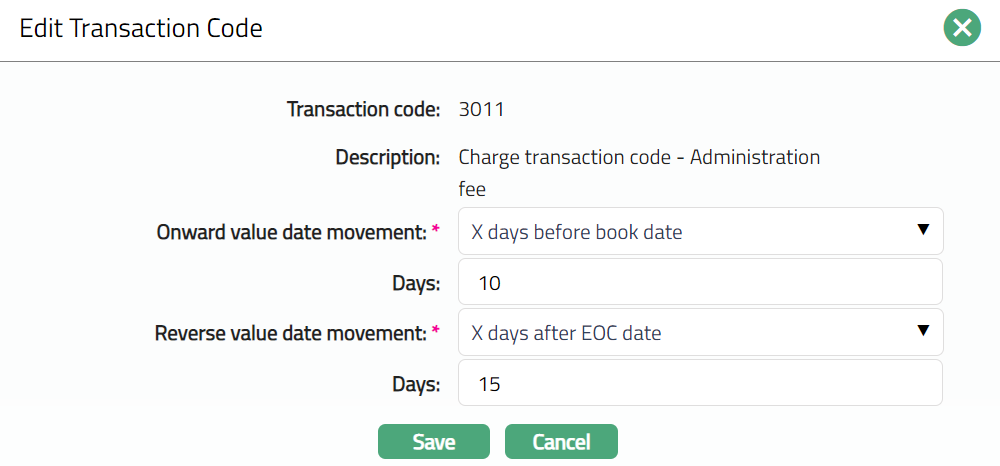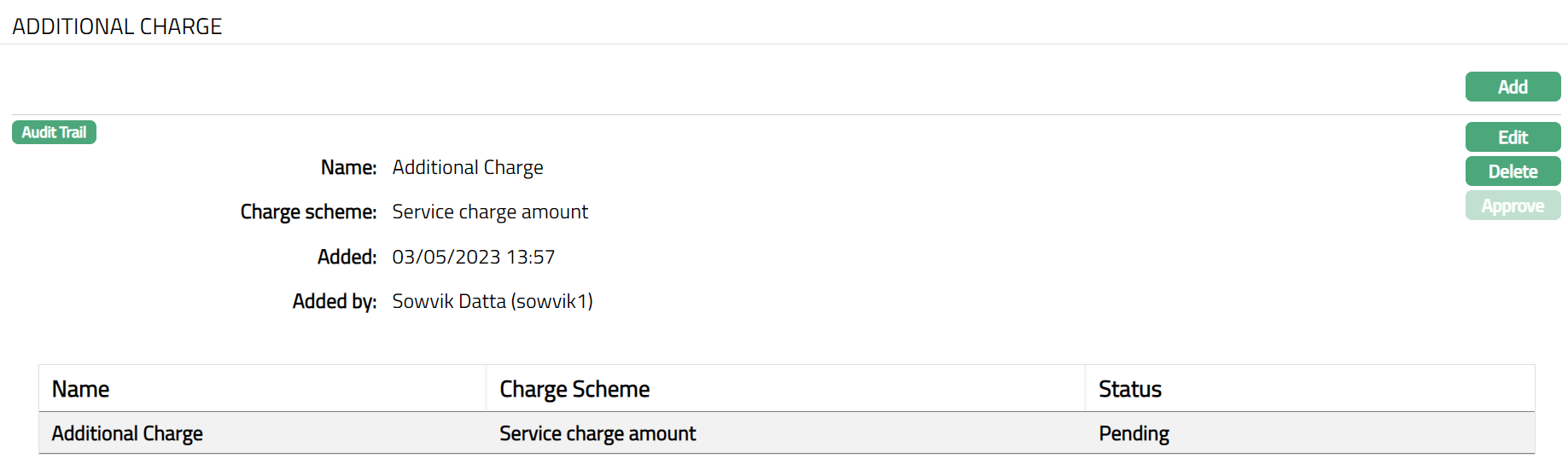 | 4 | Service charge | Dropdown | Defaulted value will be displayed. Edit button enabled on selection of this field. |
