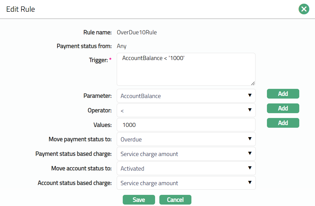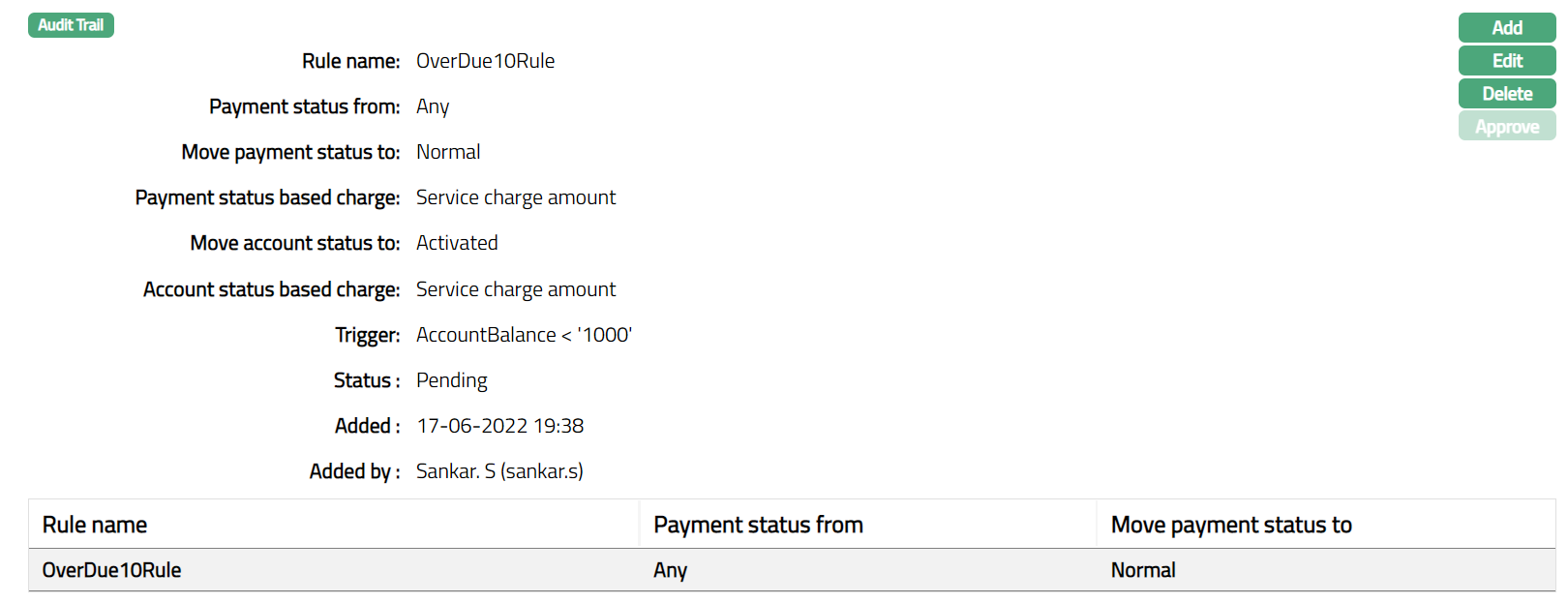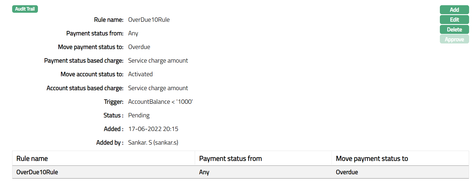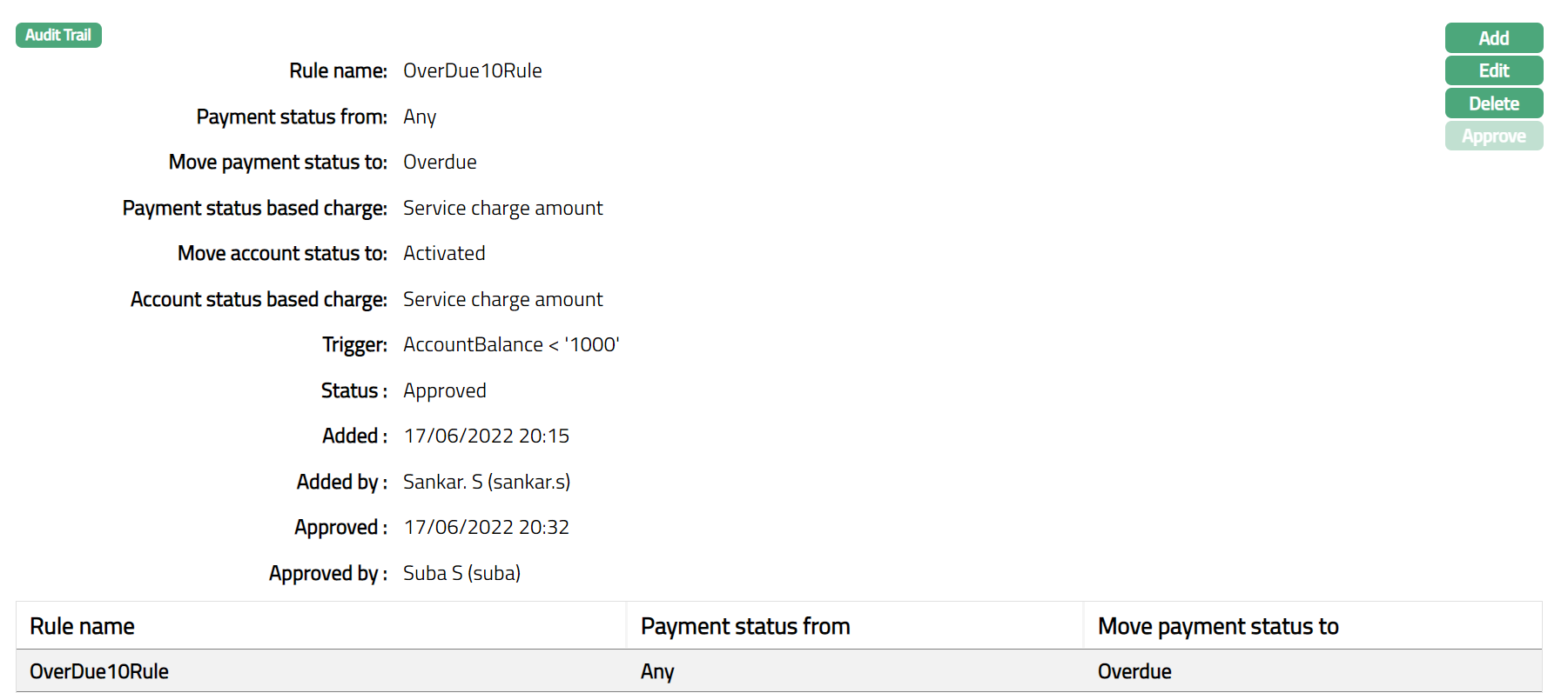 | 26 | Overdue status check | Dropdown | Default value will be displayed. Edit button enabled on selection. |
