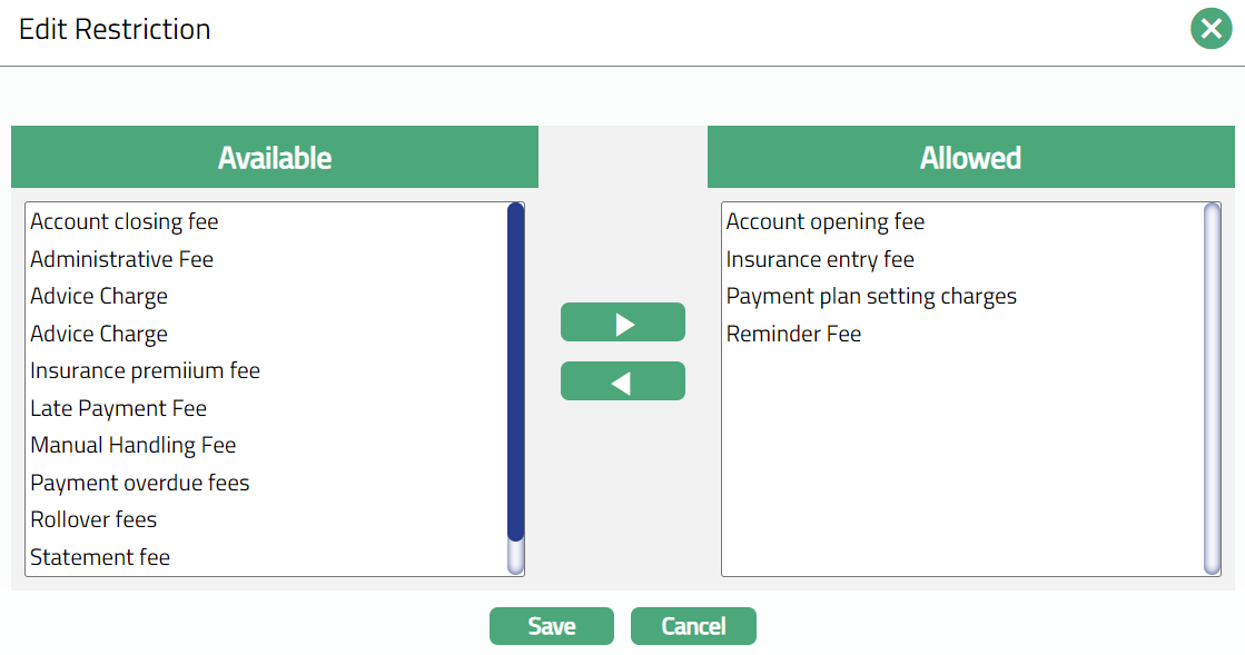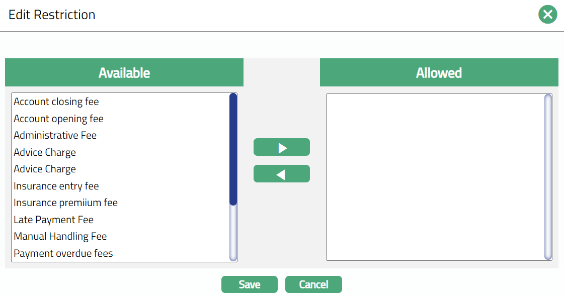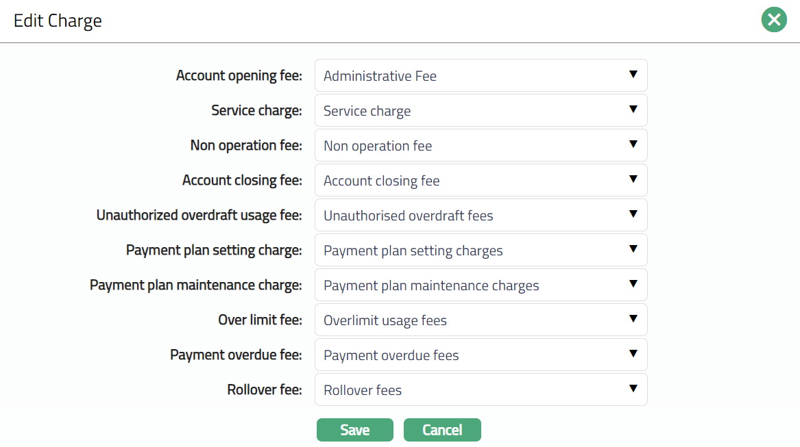 | 8 | Account closing fee | Dropdown | Defaulted value will be displayed. Edit button enabled on selection of this field. |