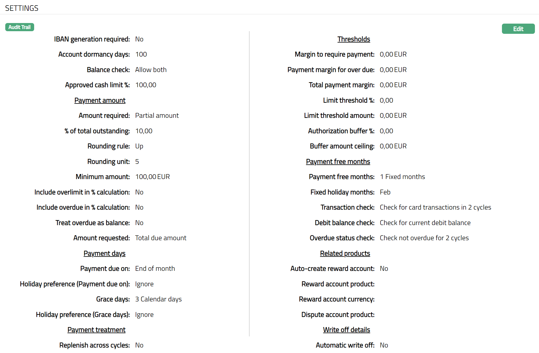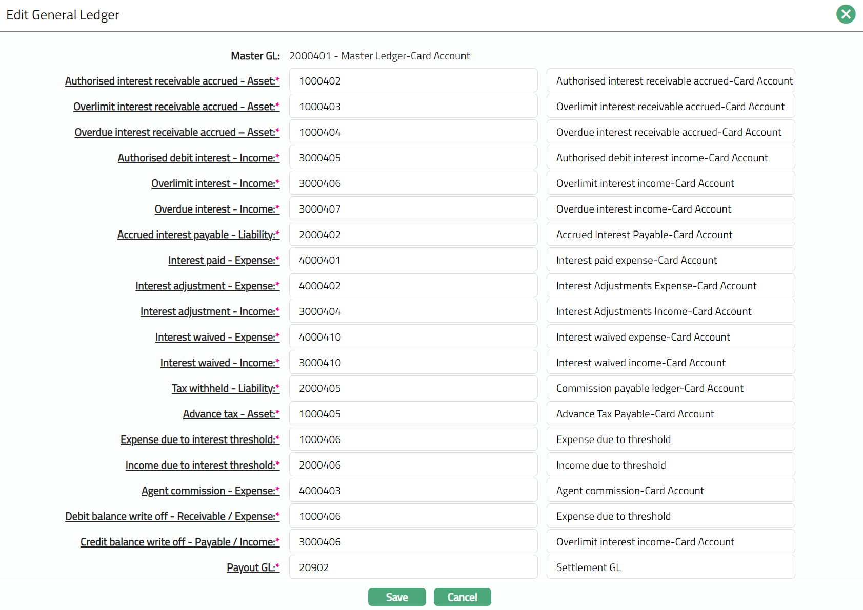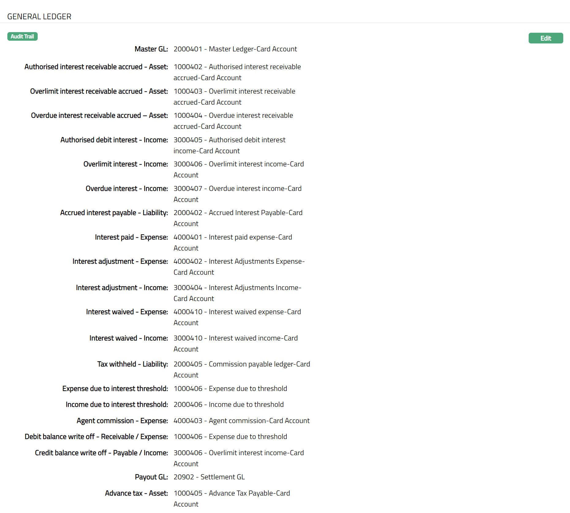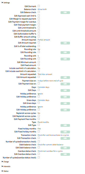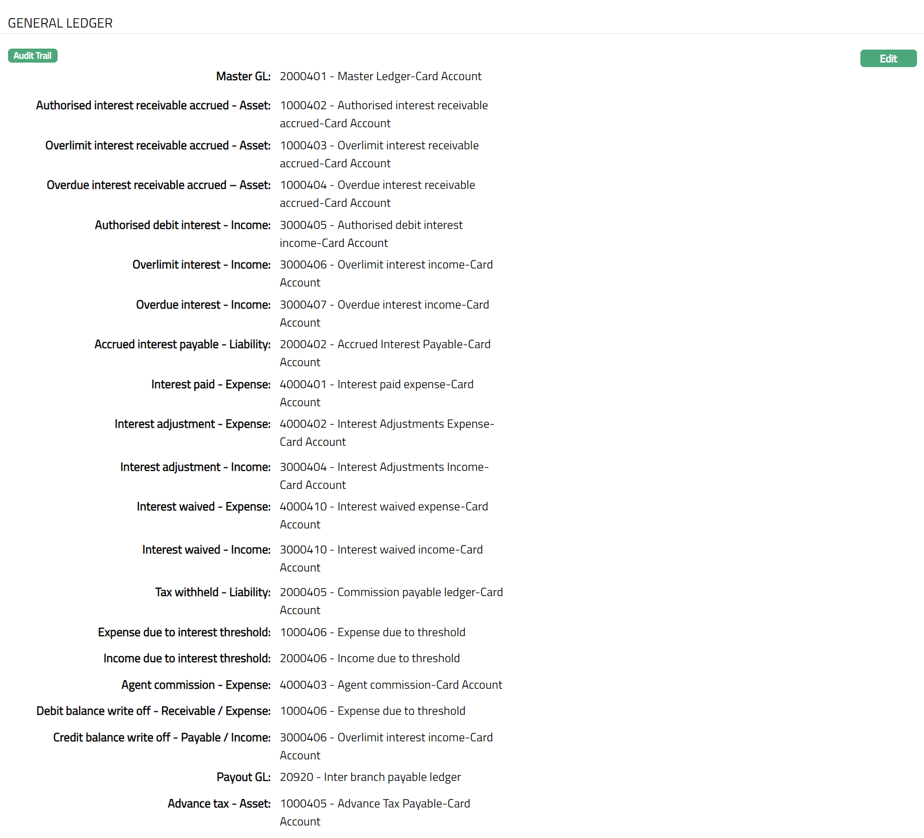 | 16 | Over limit fee | Dropdown | Defaulted value will be displayed. Edit button enabled on selection of this field. |
