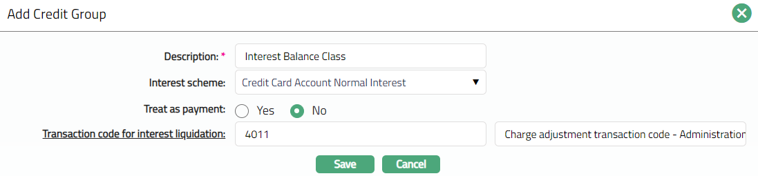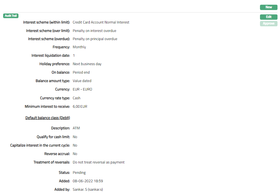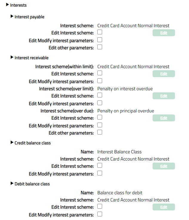 | 8 | Interest scheme (over limit) | Dropdown | Defaulted value will be displayed. Edit button enabled on selection of this field. |