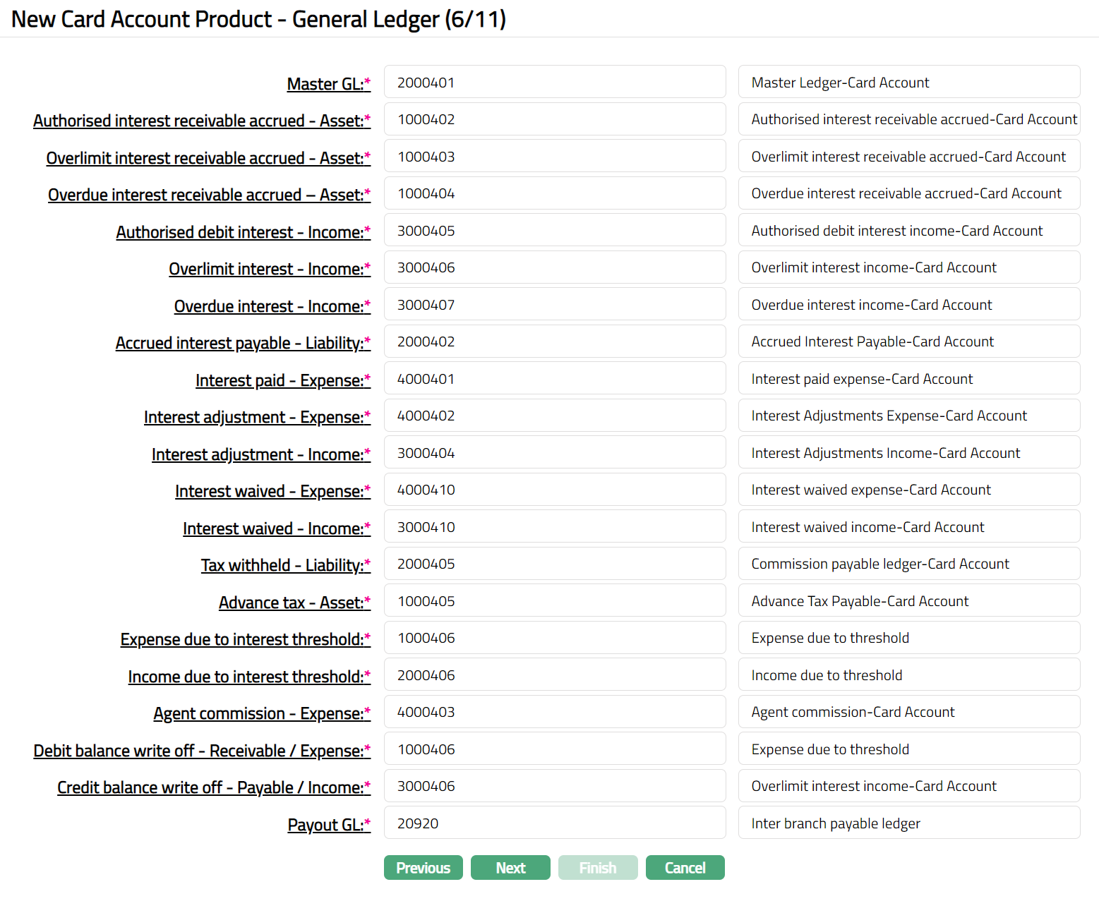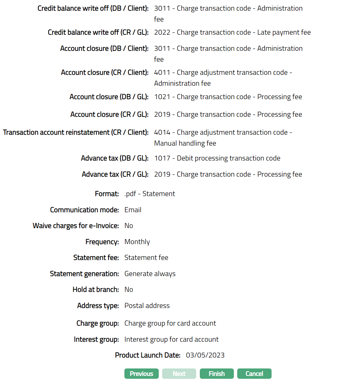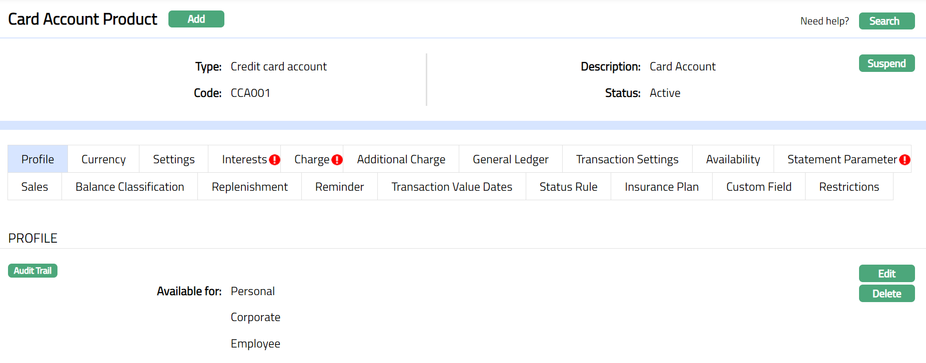 Card Account Product menu allows you to maintain the details of various credit card products that are offered by the bank to the customers. These products can be created under various types like Credit card account, Bonus account and Dispute account. Once the card account product is created, you can maintain the various parameters related to it such as interests, charges, value dates, balance class, etc.