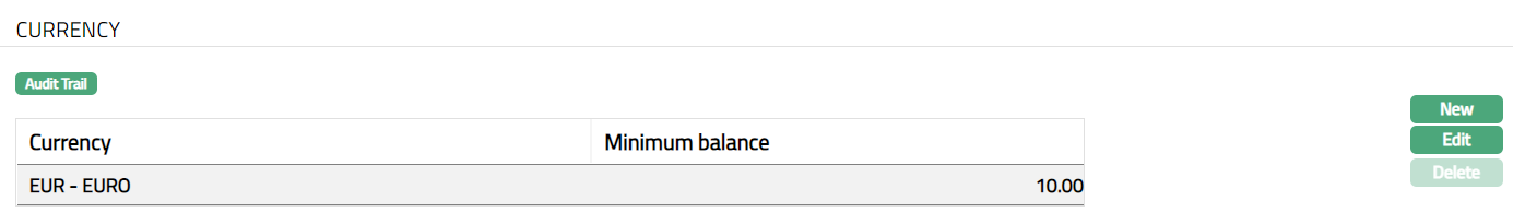 Select Currency for the Product from the dropdown list of GL Currencies. More currencies can be added during Edit using the Currency tab, once the Product record is created. Accounts for the product can be opened only in the selected currencies.