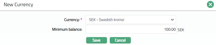 | 14 | Rounding currency | Dropdown | Default value will be displayed. Edit button enabled on selection. |