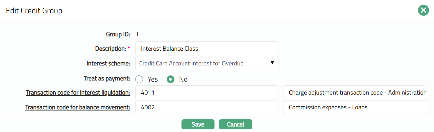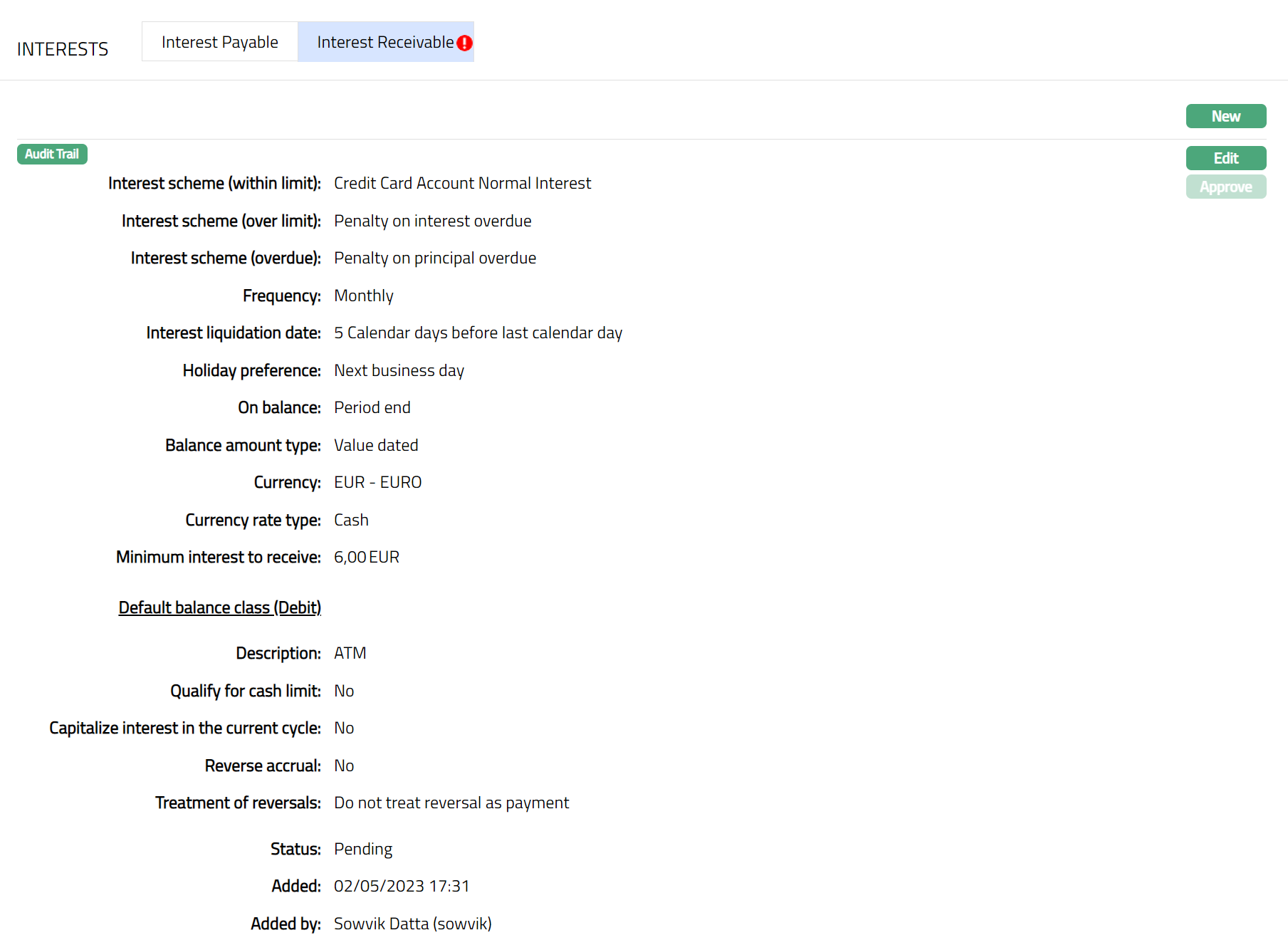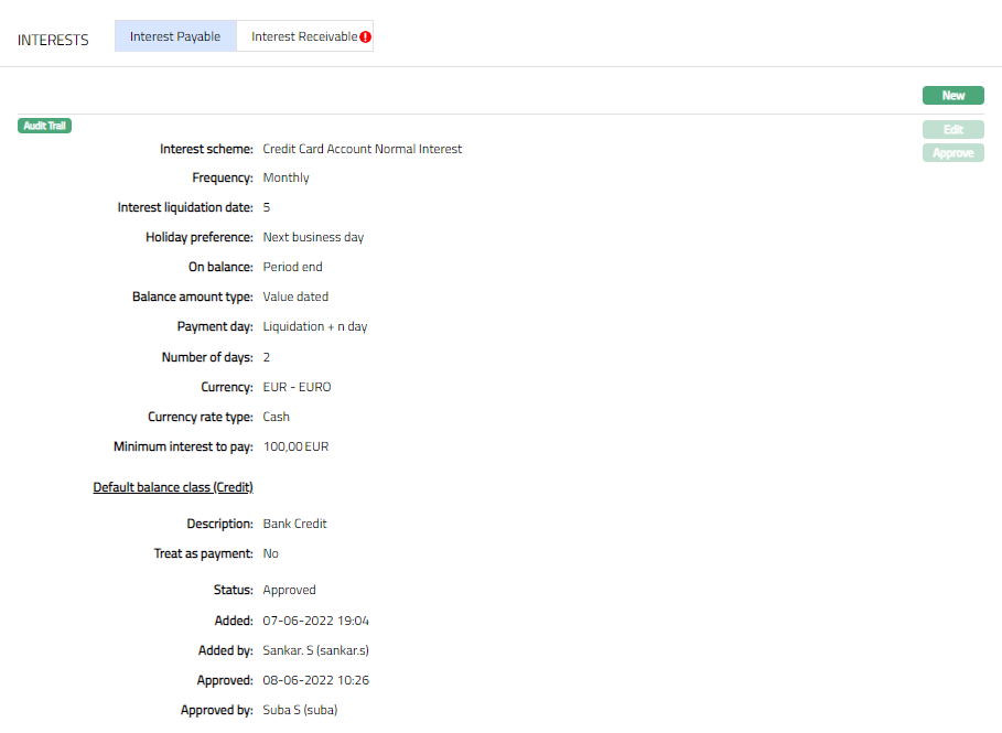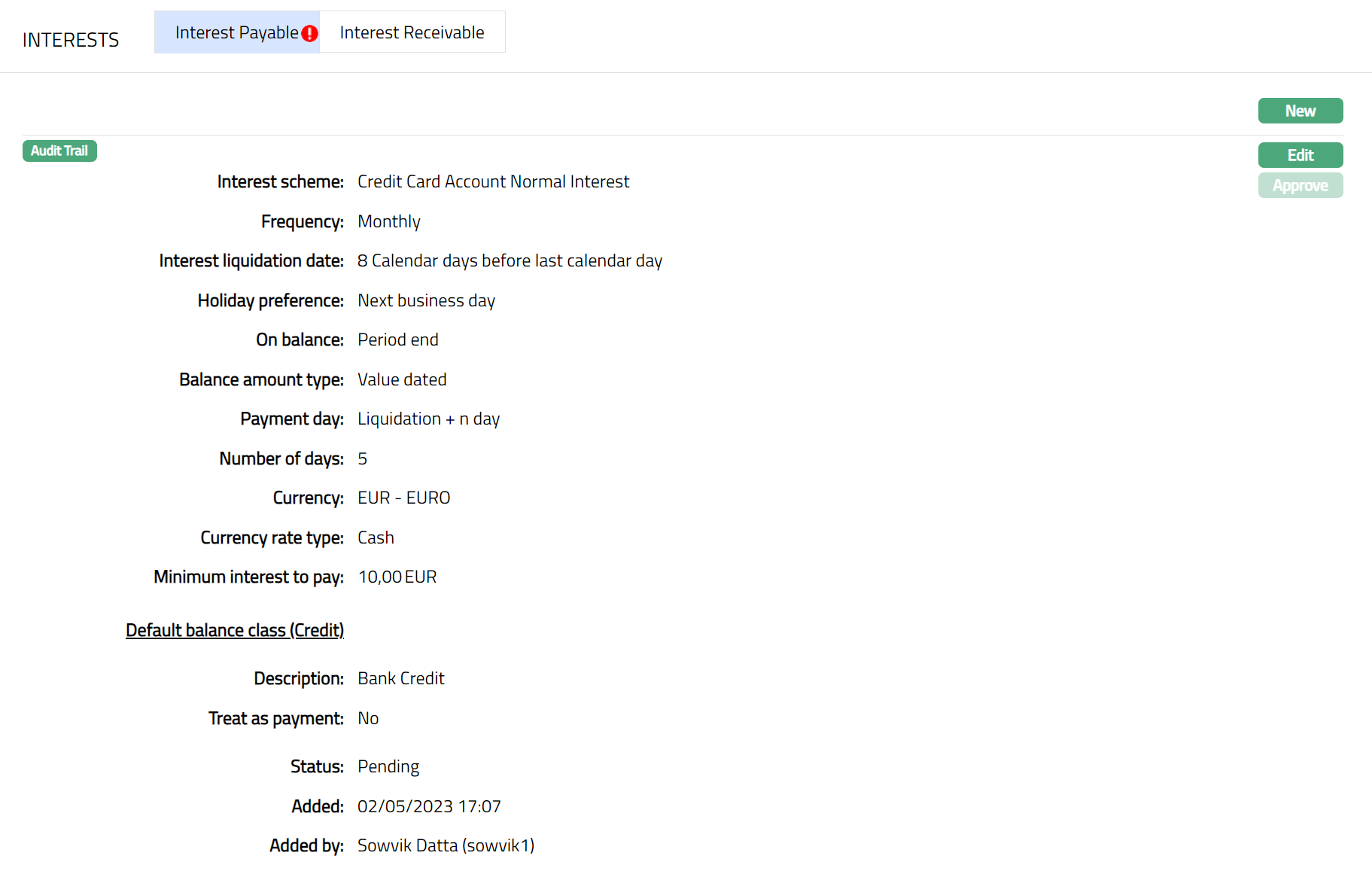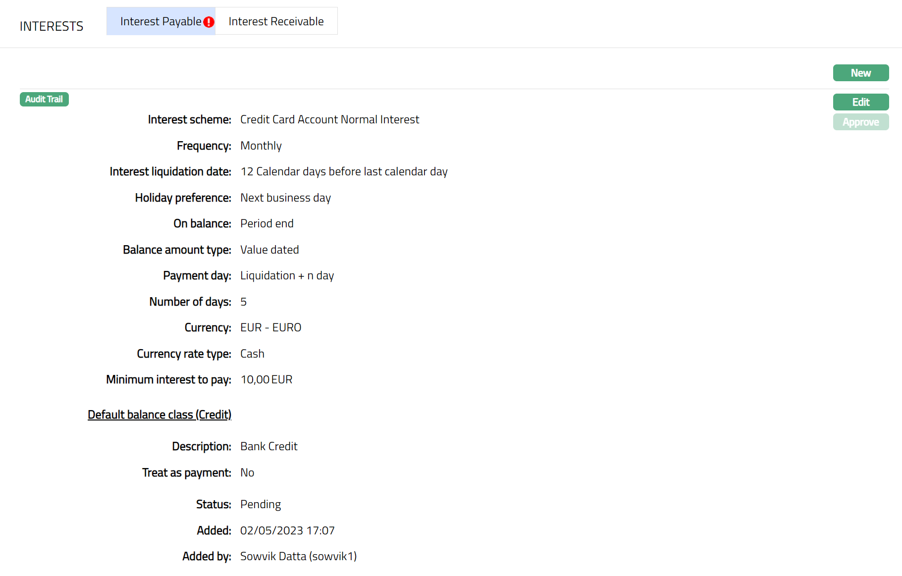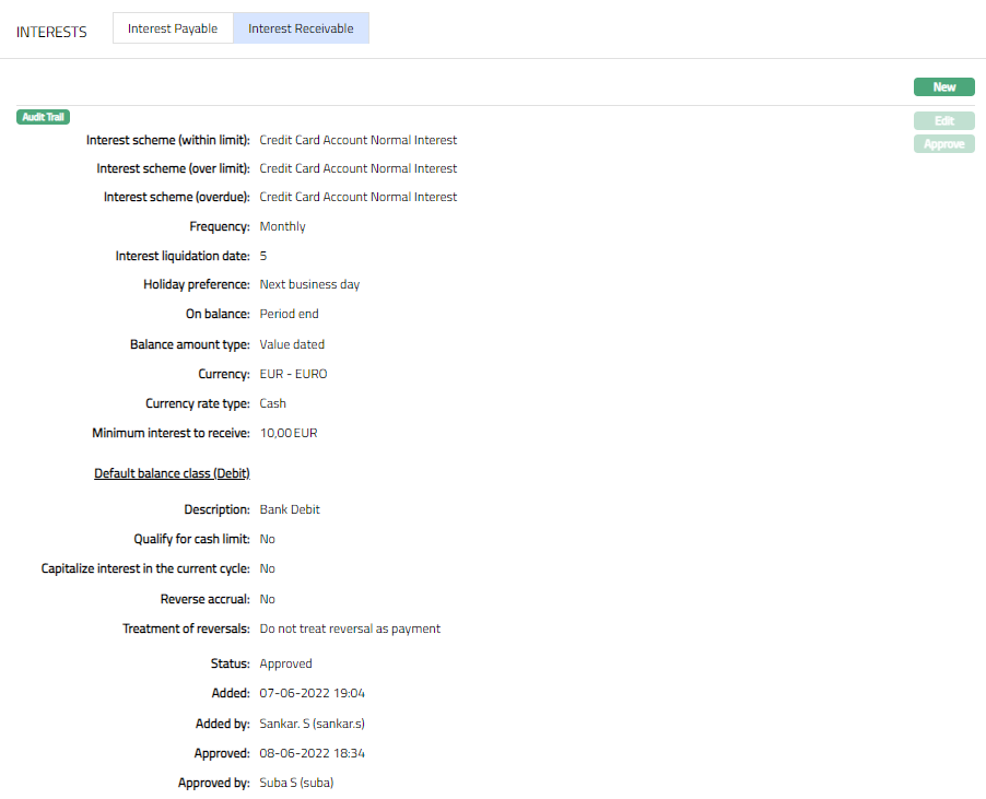 | 10 | Interest scheme (overdue) | Dropdown | Defaulted value will be displayed. Edit button enabled on selection of this field. |