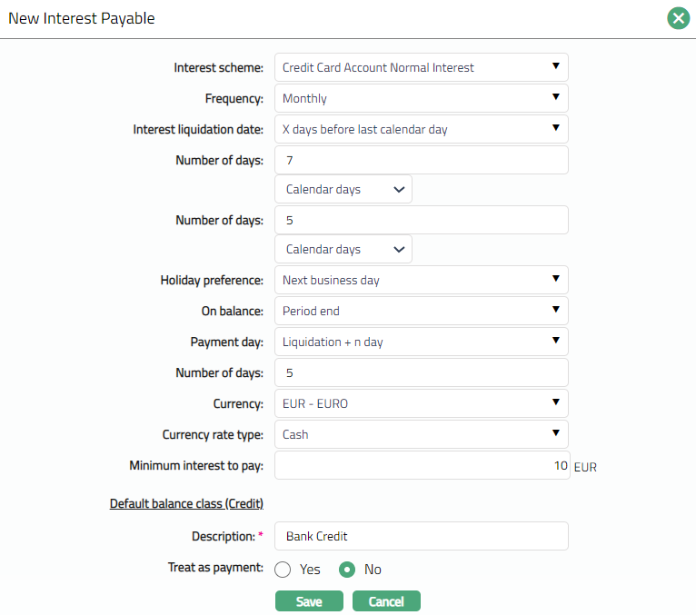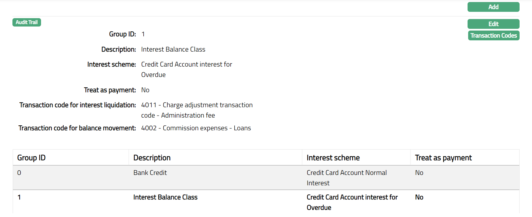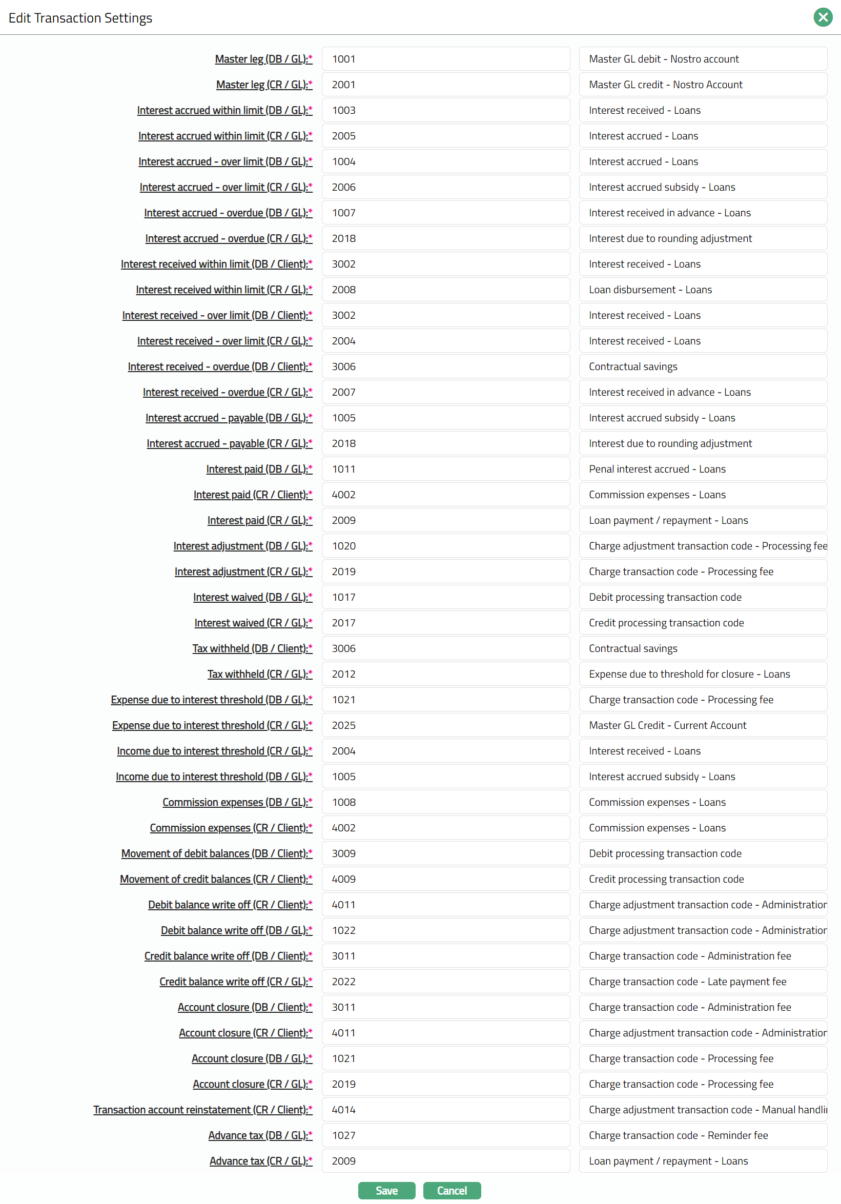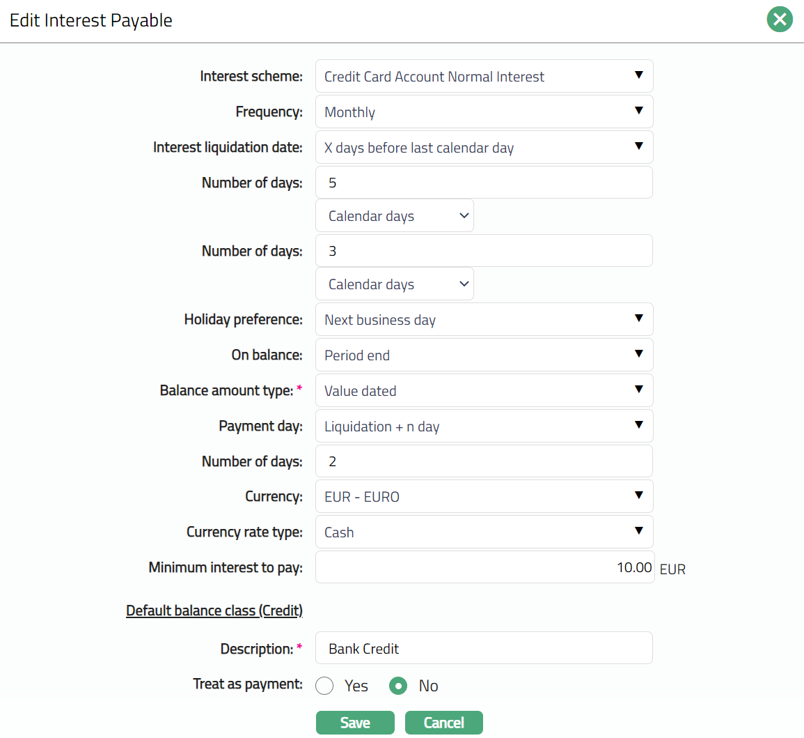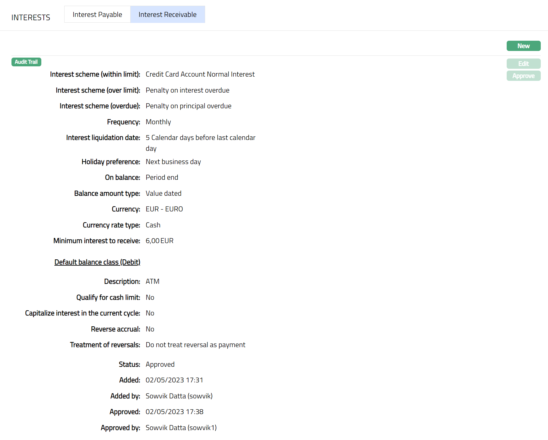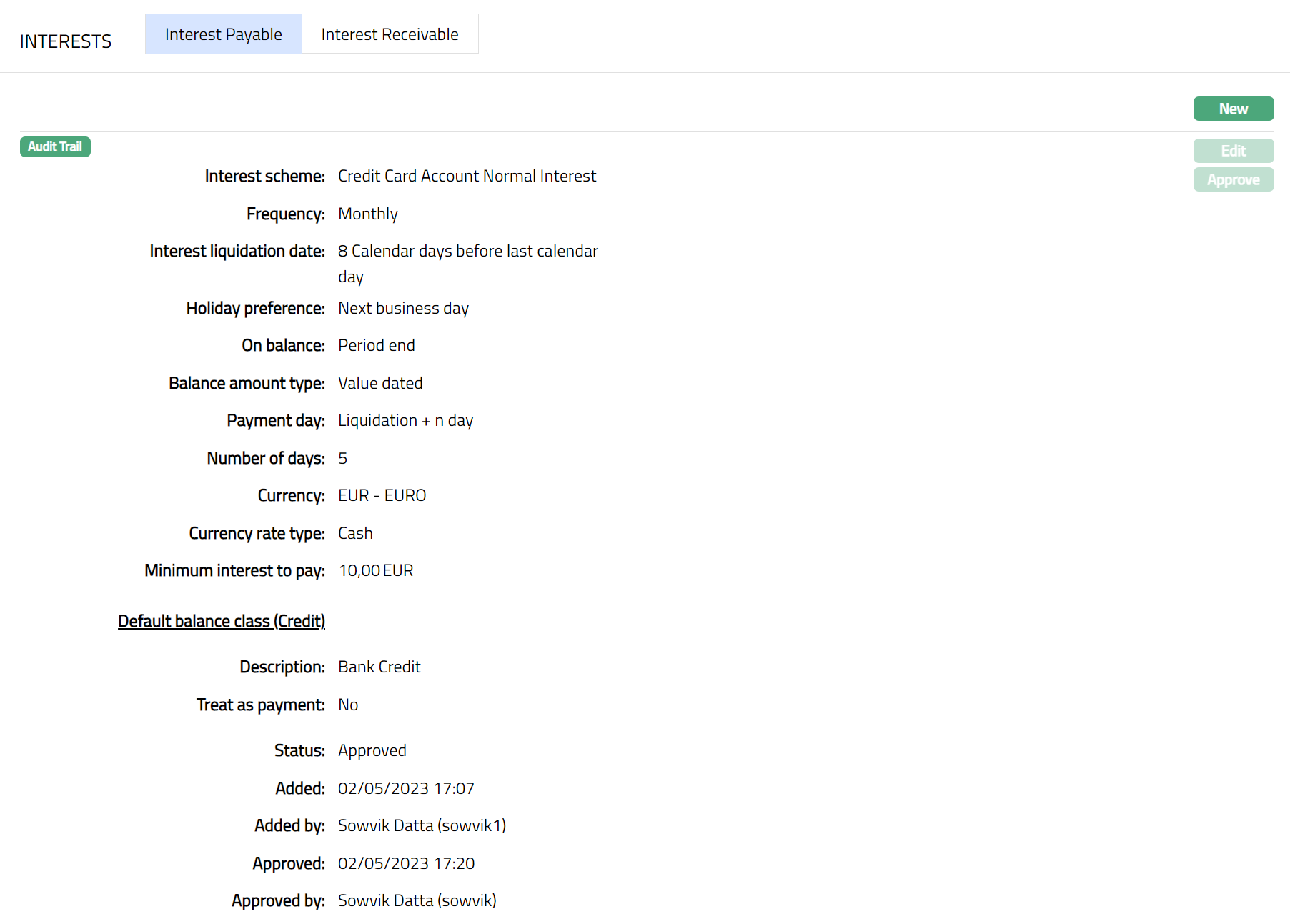| 10 | Interest scheme (overdue) | Dropdown | Defaulted value will be displayed. Edit button enabled on selection of this field. |