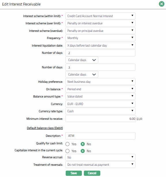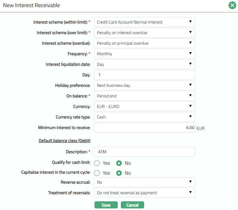 If option 11 is chosen above, Interest receivable Liquidation frequency options Daily and Monthly will be disabled.