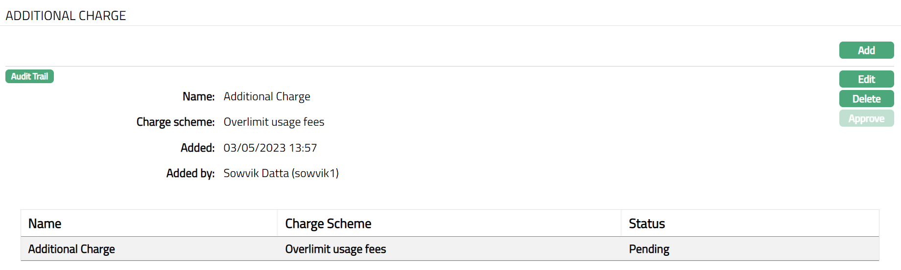 | 22 | Charge scheme | Dropdown | Defaulted value will be displayed. Edit button enabled on selection of this field. |