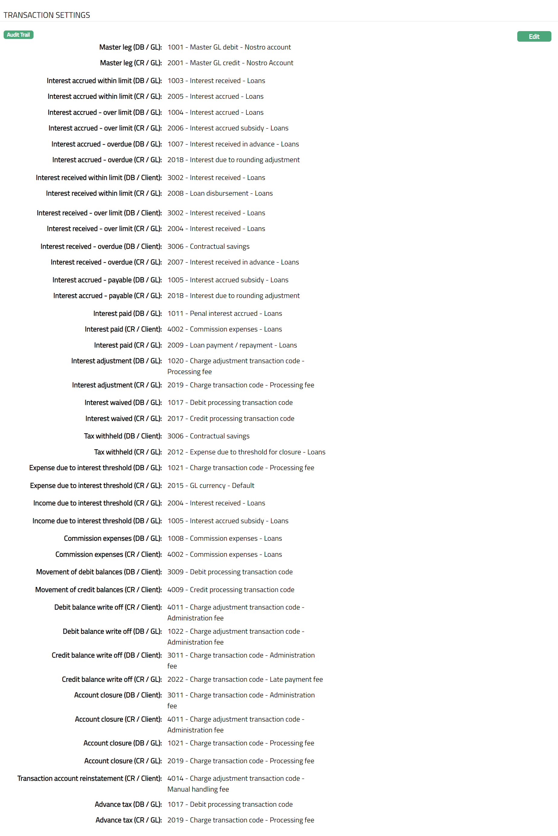 | 23 | Transaction check | Dropdown | Default value will be displayed. Edit button enabled on selection. |