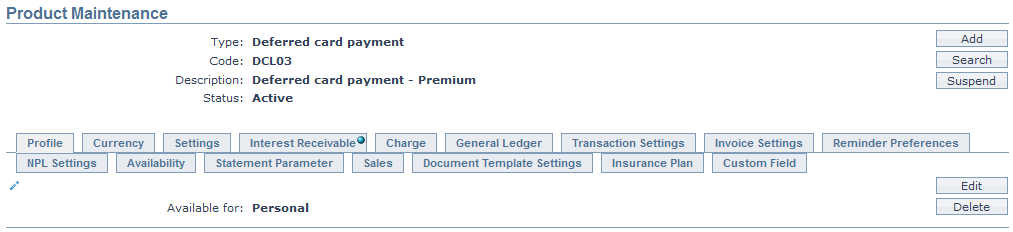 Card Loan Product maintenance menu allows you to maintain the details of card loan products that are offered by your bank to its customers. These products can be created under two different types, Deferred card payment and Installment loan. Once the product is created, the values in these products are defaulted to the Card Loan Accounts that are created under the Product, with an option to change the details at the account level.