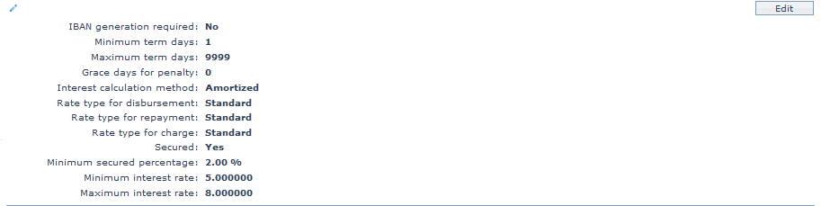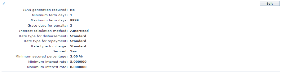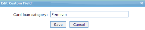 3. Click on Edit. The Edit Custom Field page appears. In the following illustration, one custom field Loan Category has been mapped to the product as shown below: