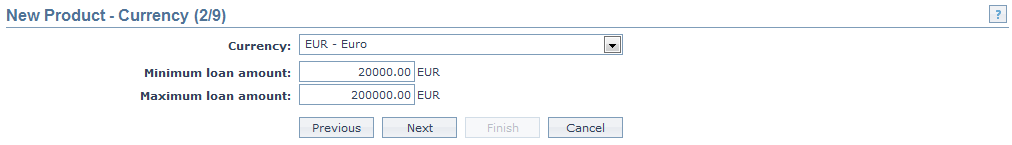 7. Click Next. The New Product → Currency (2/9) page appears.