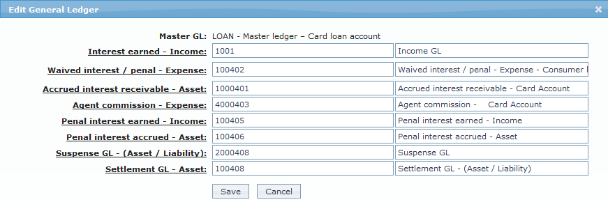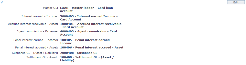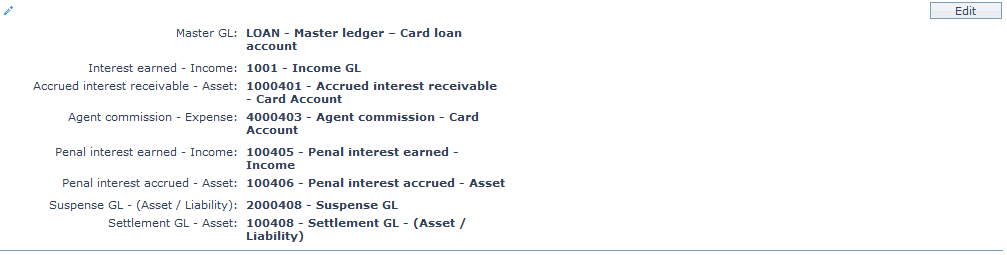 | 7 | Penal interest accrued – Asset | for accounting the Penal interest accrued on accounts under this product | Ledger type Asset |