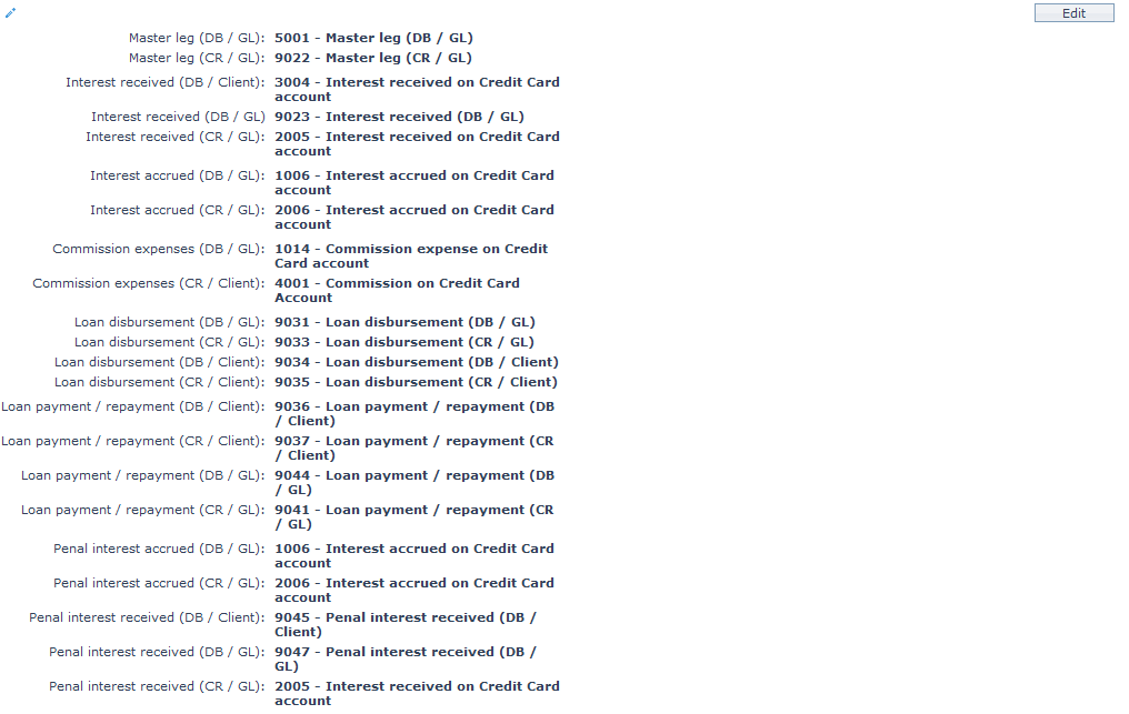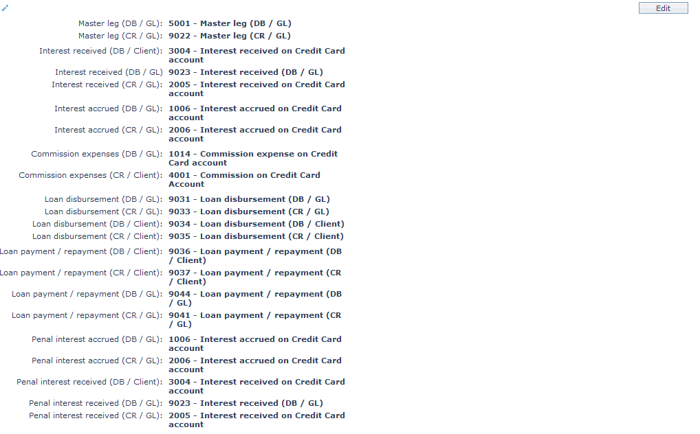 | 14 | Loan payment/repayment (DB/Client) | for recording all payment / repayment transactions in the Client account. | Client account Credit. | Payment/Repayment |