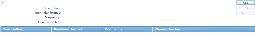 4. Select the Reminder Format from the drop down list of reminder formats that have been maintained under Admin > System codes > Generic definition > Reminder formats. It is the Format of the reminder that is to be generated.