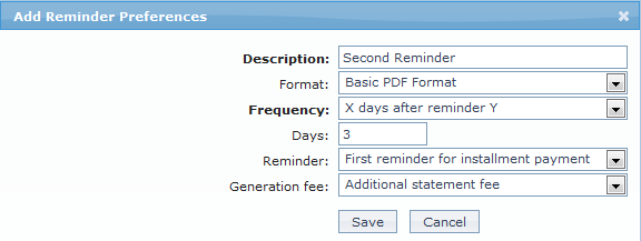 The Reminder Preferences tab allows you to add, view and edit the preferences based on which the reminders are sent to client for recovering their dues.