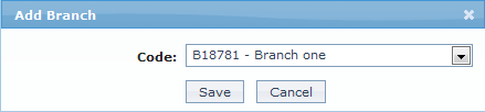 4. Click on Add. The Add Branch screen appears where you can select the required branch from the drop down of all active Branches of the entity.