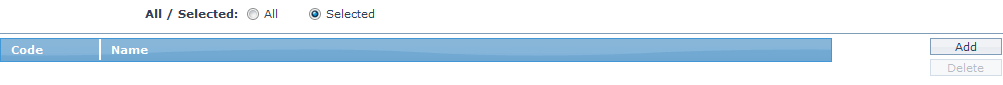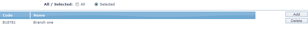 3. To restrict the branches for which this Product is available, click on Selected radio button. Add button is now enabled.