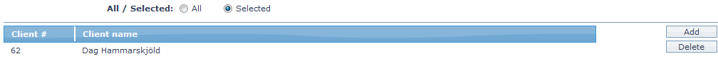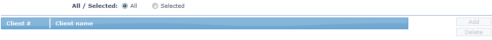 9. To restrict the Clients for which this product is available, click on Selected radio button. Add button is now enabled.
