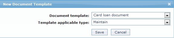 Using this tab, you can maintain the document template which can be used for creating documents for all the accounts maintained under this card loan product.