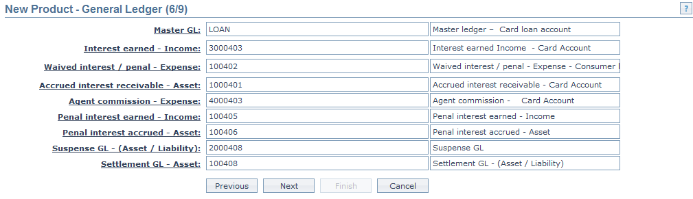 37. Click Next. The New Product → General Ledger (6/9) page appears.