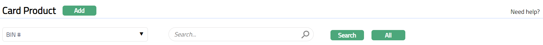 Search: You can search a Card Product saved in Aura by a click on Search button. Aura will then display Card Product Search screen where you can search for a card product by entering the related search inputs.