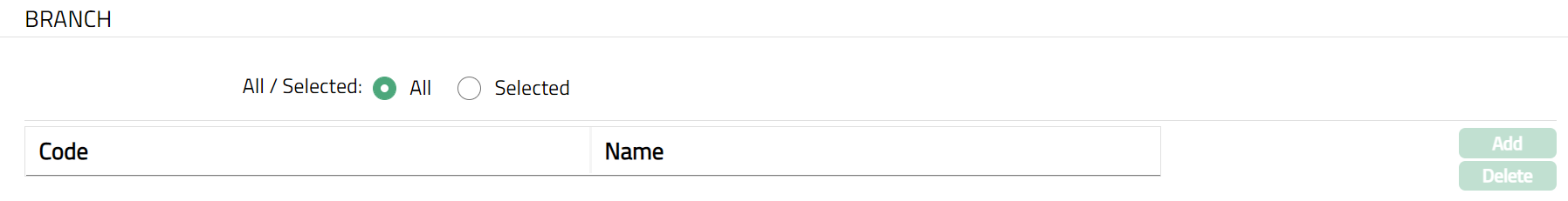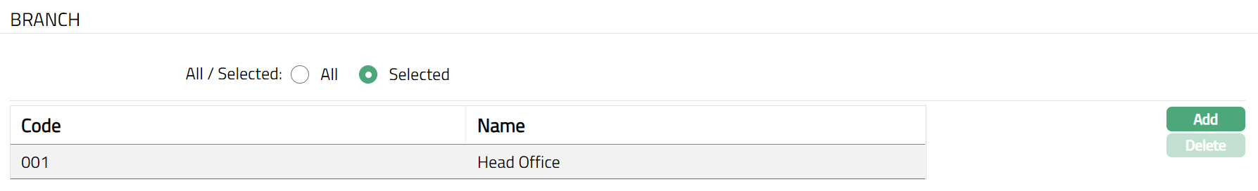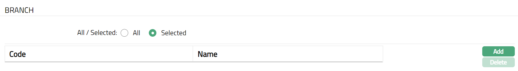 To restrict the branches for which this Product is available, click Selected radio button. Add button will be enabled.