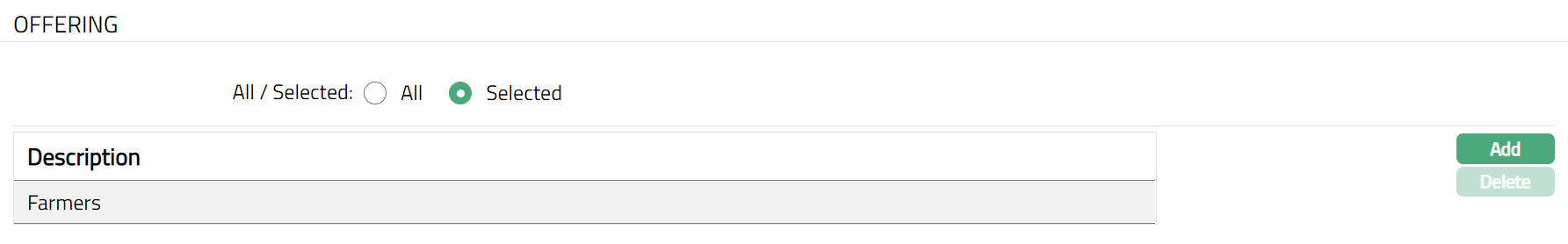 To restrict offerings for which this Product is available, click Selected radio button. Add button will be enabled.