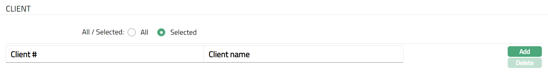 To restrict clients for which this Product is available, click Selected radio button. Add button will be enabled.