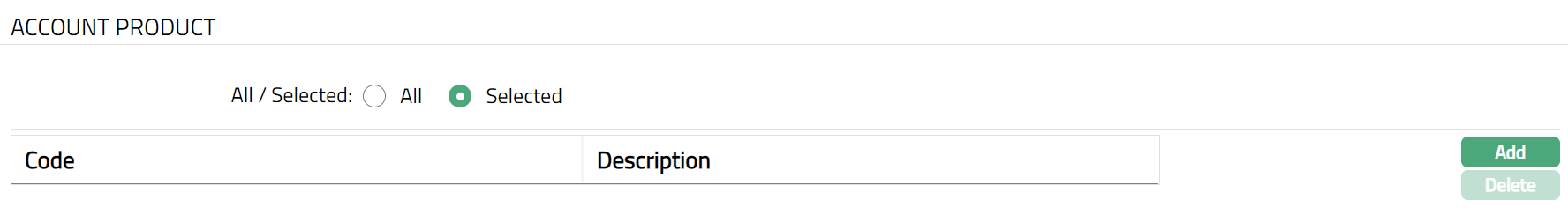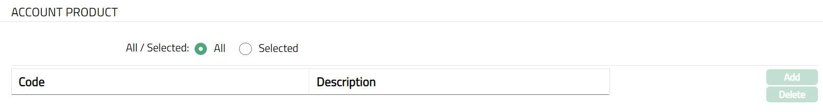 To restrict Account Product for which this Card Product is available, click Selected radio button. Add button will be enabled.