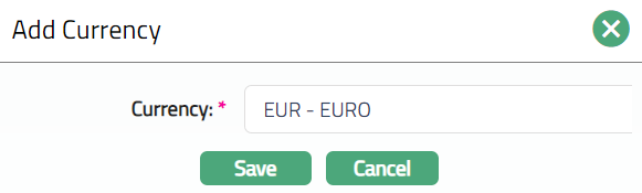 - Click Save. Currency page appears with the added details.