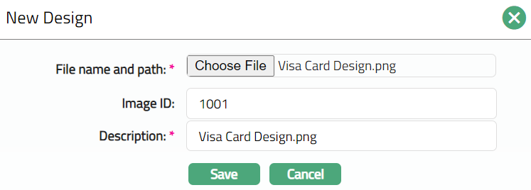 Select desired card design image file saved in your system by clicking the Choose File button.